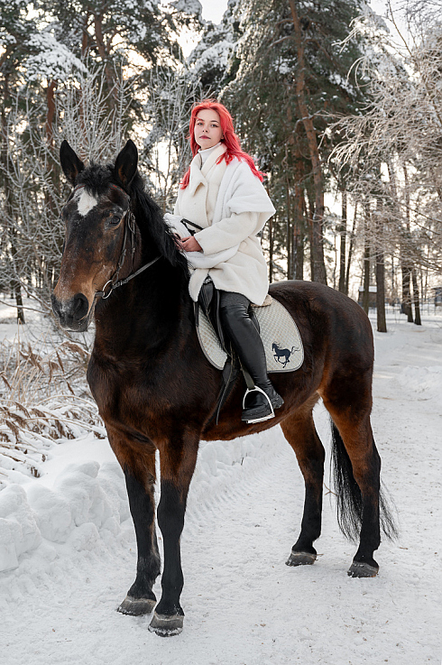 Хочу выразить искреннюю благодарность фотографу Александре. С самого начала она взяла на себя всю организацию: согласовала варианты съёмки, собрала нужную информацию и сама договорилась (звонила). Мне оставалось лишь делиться пожеланиями. Александра съездила с нами на осмотр локации и заранее подготовила референсы. Это особенно ценно для тех, кто редко позирует. В итоге фотограф воплотила в жизнь все задумки, которые я присылала в качестве примеров. Во-вторых, она осуществила мою мечту о романтичной, сказочной фотосессии с лошадьми. И это в −30! Несмотря на то, что мерзла лошадь и замерзал объектив, Александра умудрилась сменить мне два образа. Хотя она предупреждала, что из-за условий (непослушность лошади и холод) кадров может быть немного, на деле их получилось более чем. В-третьих, помимо готовых работ с ретушью, нам отдали и весь исходный материал, хотя я об этом даже не просила. Собственно, результат вы можете оценить сами.
